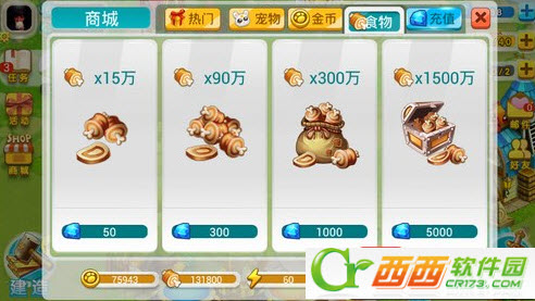 大R必备,获取食物快准狠,15W食物只需要50钻。