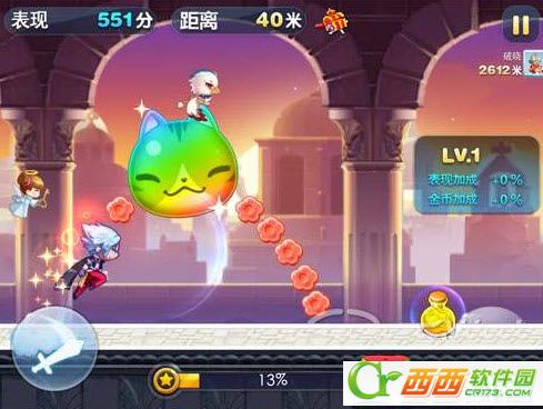 7、进击模式说白了就是一边跑酷一边砍怪,在跑酷的同时要时刻留意怪物的出现,当怪物达到你的攻击范围时潇洒地将其消灭,进击模式最讲究的是“进击力”,升级进击力是获取高分的快捷途径!