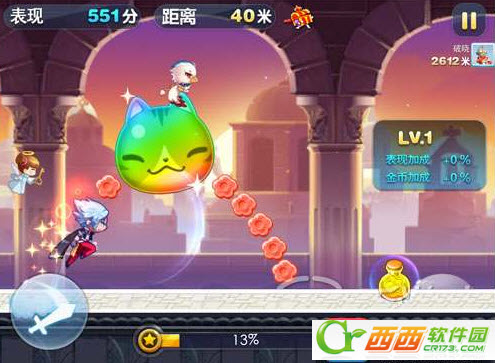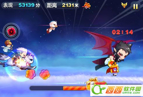 进击模式下的超级奖励模式也发生了重大变化,酷跑儿们将近距离接触游戏中的大反派:绑架小天使的魔王。此时你只需不断的点击屏幕发动攻击便可以,在你攻击BOSS的时候,他会不断的掉落奖励哦!