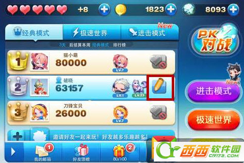在新版本游戏主界面排行榜上多了一支笔,我们可以点击编辑自己的个性签名,是吐槽还是什么,大家看心情吧!