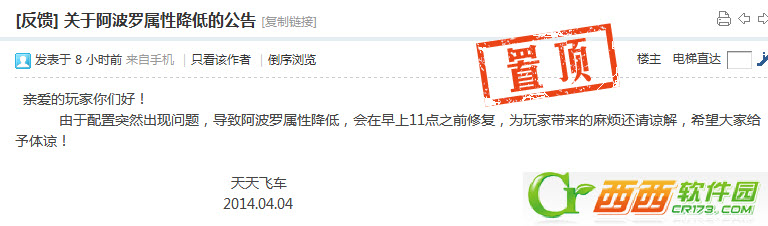 一大早的西西就看到天天飞车的玩家在论坛吐槽:阿波罗s属性怎么又改了?我去,阿波罗s的最高速度怎么又调了,腾讯真吭啊,就吭这些平民,真不想再玩下去了?这是什么原因呢?看看官方给出的解答吧!