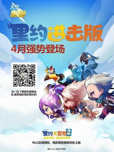 今年4月11日,《里约大冒险2》即将在全球上映。而这次电影出品方福克斯(FOX)蓝天工作室选择了腾讯旗下第一跑酷手游《天天酷跑》作为中国区战略合作伙伴。这不仅是《里约》系列电影和国内游戏厂商的初次合体,也是腾讯旗下手游和国际大片的第一次跨界合作。