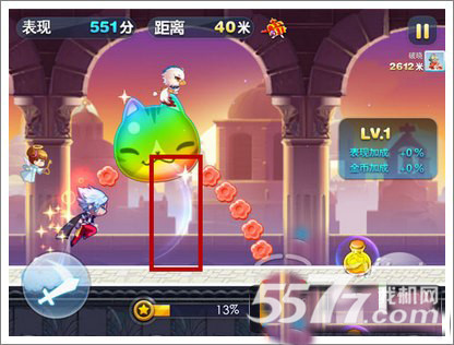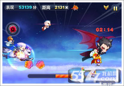 在进击模式中,超级奖励不在是经典模式中的黑洞,而是关卡boss出现,在奔跑的时候,下方会有一个能量条累计到100%时候就会出现BOSS,玩家们别担心,boss是不会伤害你的,你利用你熟练的技巧解救绑架的小天使恶魔就可以了。