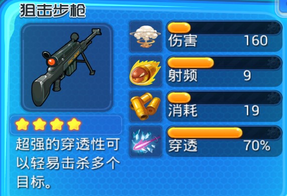 火力枪械中的武器都还蛮给力的,小编这里推荐大家使用狙击步枪,具有超强的穿透性,清怪将会很轻松。