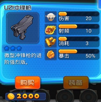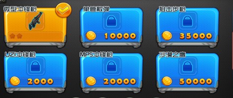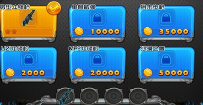 点击选中武器下方的购买,花费对应的游戏金币,就可以购买该武器。