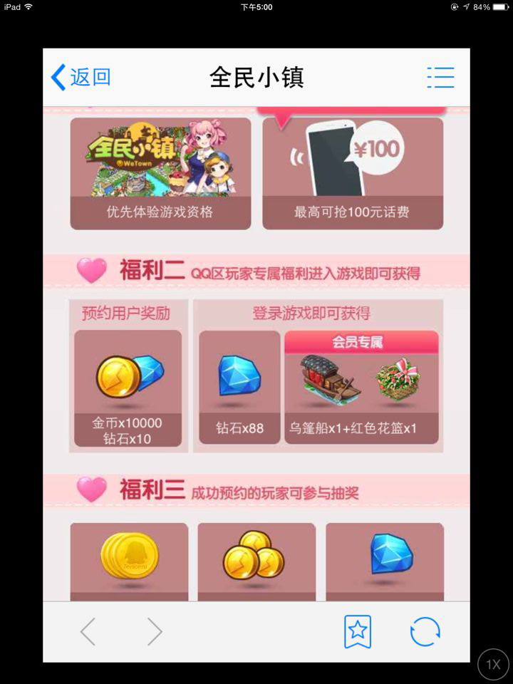 首先,所有参与放号资格预约的玩家都可获得10000金币、10钻石奖励。在《全民小镇》公测到来时,玩家只需使用QQ帐号登陆游戏,即可领取到预约钻石奖励88个。同时,QQ会员使用QQ号码登陆游戏,更能将高景观加成建筑乌篷船和红色花篮收入囊中。