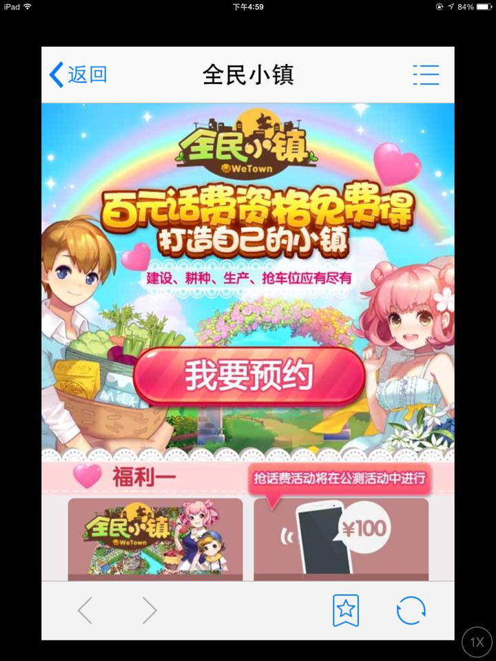 自4月4日至4月12日,所有在活动页面内成功预约游戏的玩家,都能100%获得优先体验游戏资格,早一日投入小镇建设,快一步感受游戏魅力。而在《全民小镇》公测正式开启后,成功预约的玩家更可在公测活动中参与抽奖,从天而降的百元话费属于最幸运的你。