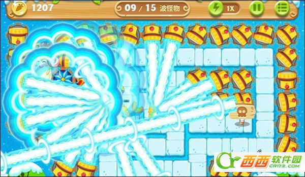 这一关的道具比较多,前期第一个炮台的安放显得格外的重要