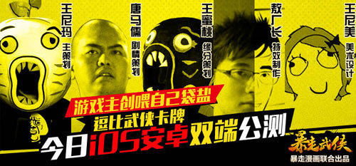 简介:极致恶搞、毫无节操!由梦想手游独家双端代理,暴走漫画联合出品的逗比武侠手游《暴走武侠》今日震撼开启iOS安卓双端公测!作为2014年最受期待的武侠卡牌游戏,《暴走武侠》自上线以来便受到众多媒体、玩家的一致好评,此次更有暴走漫画兼游戏5大主创组成史上最奇葩的代言阵容,为千万玩家带来史上最具颠覆性的新一代武侠卡牌手游,共庆公测!