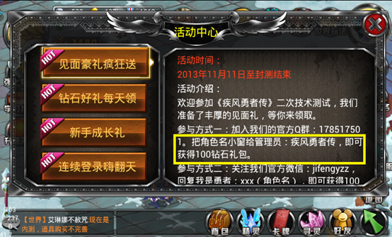 5、官方活动:当前官方组织的封测活动,很多都会有钻石奖励,相信后期游戏活动中还会有很多类似的活动,多关注活动,疯抢大量钻石吧!