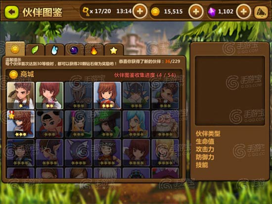玩家在每个副本闯关成功后,都一定的几率获得该副本中的怪兽卡片,成为自己小伙伴队伍中的一员。商店模式中,玩家也可以通过钻石购买和爱心兑换两种方法,获得更多主力,稀有甚至超稀有的小伙伴。
