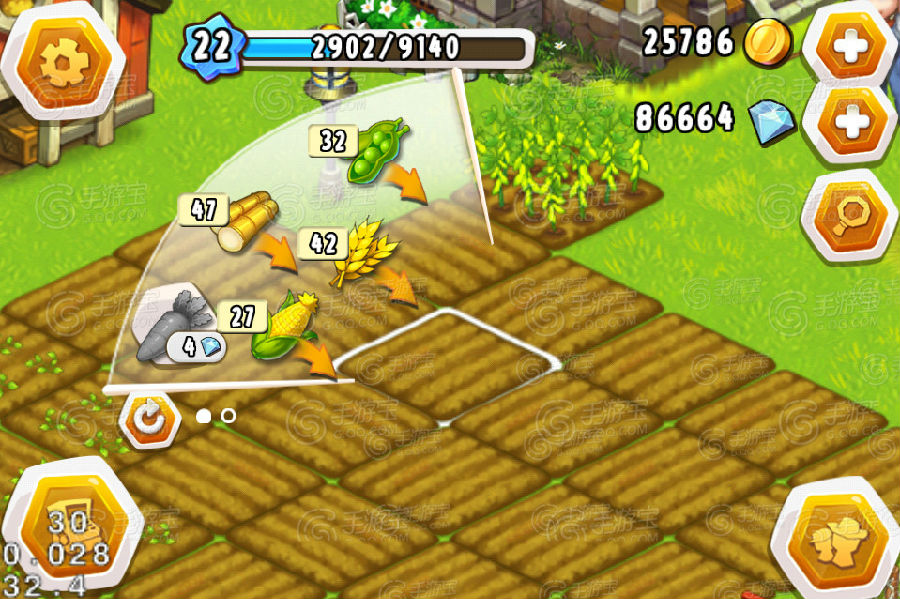 小编点评:后期庞大的农作需求不是六块田地可满足的,玩家在种植的同时,也要随着等级的升高不断扩展田地。