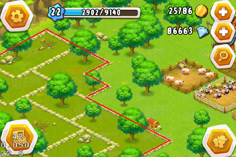 当玩家已经有了雄厚资金支持时,那么,就可以着手拓展土地了!增加种植面积,扩大生产规模,都需要更多土地的支持,小编有时候想:发展和大自然真的很难寻求一个平衡点。所以已具备实力的你,为了创造出更多的财富,为了更好的建设农场,请科学拓展土地吧!