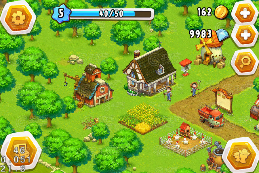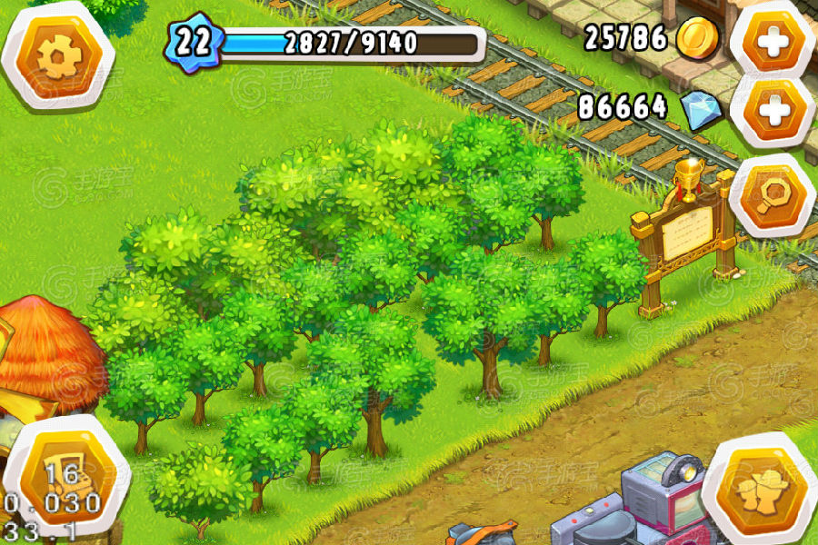 不断接任务提升至一定等级后,玩家可开启种植果树之路。果树不仅绿化美观,成熟后生成的果子也是后续重要的工业原材料。果树种子购入的价格比较高,所以玩家前期一定努力赞金币,土豪可以通过RMB购买金币,哎!穷人家的孩纸总有一种淡淡的忧桑~ 攒钱吧,为了果园!