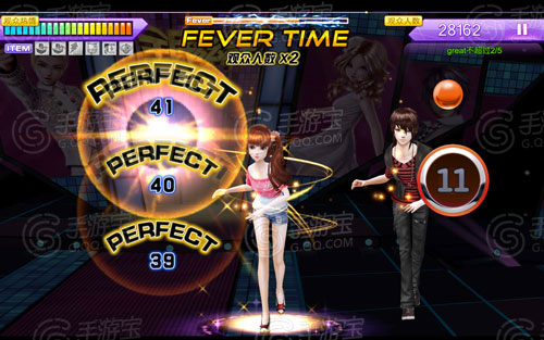 当perfect累计一定数量会引发局内的Fevertime,获得金色Perfect能更快进入Fevertime。进入Fevertime时任何判定都有得分加成,但是如果这期间出现miss,fevertime会立即中断。Fevertime的结束时间会在Fever条中以倒计时方式呈现。Fevertime时的表现是获得高分的关键。