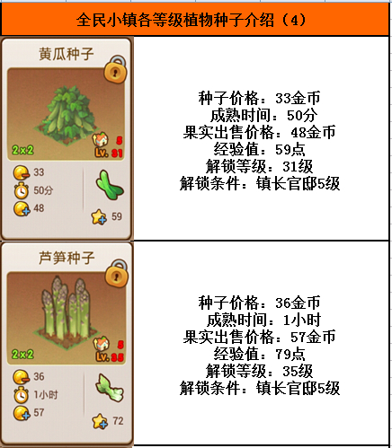 当玩家们的等级到达30之后,20等级的系列作物的收益已经开始下滑,新的一批作物开始出现在眼帘。其中打头阵的是成熟期较快的两款—“黄瓜”和“芦笋”。