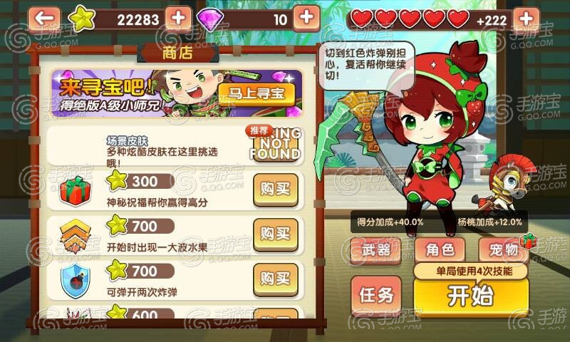 全民切水果充满了有趣却又紧张刺激的元素。看着一个个水果在自己的指下被斩成两半,那种感觉相当的爽快。3D的画面表现方式,让游戏的视觉效果变现得相当不错。像一些水分多的水果......切水果的快感通过画面展现传递给玩家!