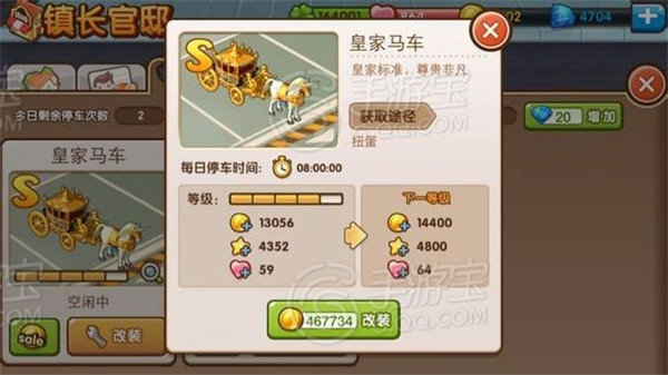 在《全民小镇》中,皇家马车的收益是目前所有现有的车类中最高的。满级的时候可以达到惊人的8小时/1W5金币。