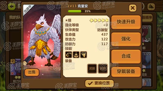 所以说,在那么多五星小伙伴当中,小编还是比较欣赏这位沉默寡言的鸟人大叔的。(克里安:......游戏里有哪位伙伴会说话吗?)不过,五星伙伴的合成基本靠运气;能不能抽到这位肉盾鸟人就要看玩家们的rp了。