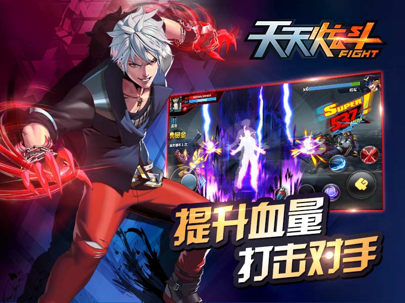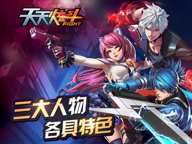 【天天炫斗】提供了银发拳师布雷泽、萌妹歌手仓木熏、剑术大师布鲁三个风格迥异、各具特色的人物供大家选择,完全满足了不同玩家的需求。三个人物都有自己的专属技能,华丽的秒杀各种对手。在人物属性方面,除了传统的生命、能量、攻击、防御外,【天天炫斗】增添了暴击、闪避、命中、精神属性,完全模拟真实的战斗情景,让玩家全方位体验动作游戏的乐趣。