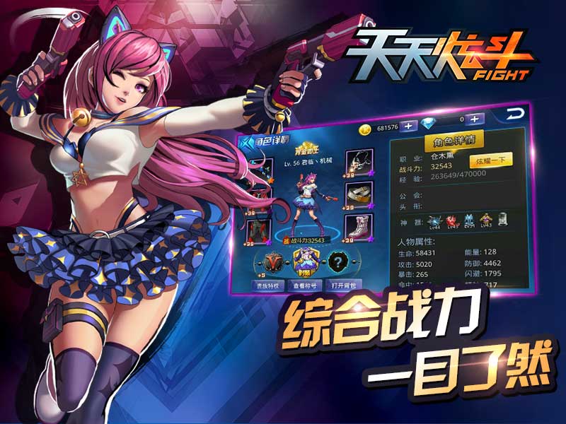 为了让玩家更清晰的判断自己的综合实力,【天天炫斗】提出了战力这一概念,将人物的综合实力数值化。玩家提升战力值的途径多种多样,包括提升人物等级、提升技能等级、装备强化、镶嵌宝石、佩戴称号徽章等,不同的提升方法所加成的战力值也会有高低之分,所以如何巧妙选择提升战力值的最优方法,也是玩家在【天天炫斗】中的一个全新挑战!