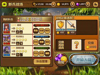 新兵战场战斗之前可以花费一定的金币购买增益buff,增益buff可以加大小伙伴生存的概率。