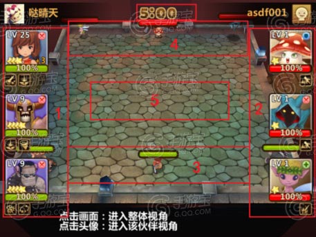 | 1 | 我方出战3名小伙伴信息界面(头像、等级、星级、技能、当前血量) 点击小伙伴头像可以切换该小伙伴视角 |