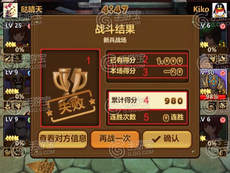| 分数获得 | 战斗胜利后会获得10~20积分,战斗失败后会扣除10~20积分 |