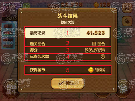 极限大战结束后,会弹出结算界面,结算界面展示极限大战最高分、到达的层数、此次战斗获得的分数、极限大战次数、获得的金币数。