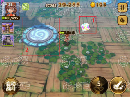 | 1 | 随机盒子:每一波会出现1个,小伙伴碰到后会获得一个随机buff (增加暴击值、增加攻击速度、回复一定量生命值、每2s对周围范围造成1000伤害、免伤护盾) |
