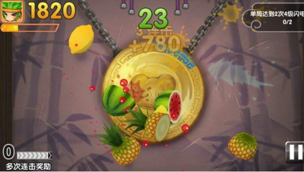 画面永远是一款游戏给玩家带来最初最直观影响的部分。“全民切水果”的画面保留了原水果忍者经典的清爽界面元素,让玩家在高速运动的游戏状态中不会受到过多的视觉元素干扰。同时又会被这独具特色的界面元素所吸引,增加巨大的代入感。