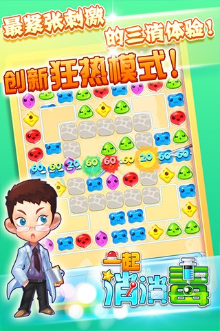 虽然《一起消消毒》上手极为简单,只要把颜色相同的细胞组成三个以上一排就可消除,但与市面上泛滥的刷分三消不同,《一起消消毒》更考验玩家的记忆力和逻辑思维,此次首发125个关卡,拥有消除病变、运送药物、限时手术等丰富的策略玩法,让你在闲暇时再也不会无聊。