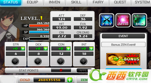 属性优先级:All Stats>STR>ATT>CON>DEF>Cri Rate>Cri.Dmg>HP>DEX>EVA>SP=INT=HIT