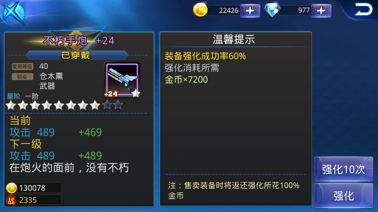 二、装备强化。升级和强化装备所消耗的金币,在后续不需要这个装备,进行出售装备时,金币是百分之百返还的,这样的话就可以放心的使用强化装备了。