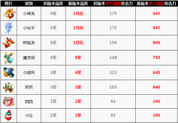 A6:新版本更新后,所有旧版本宠物,满级攻击力都大幅提升。