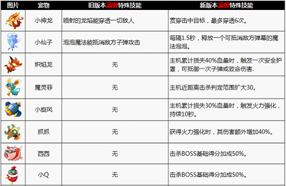 第一飞行射击手游《全民飞机大战》新版本宠物华丽变身,强势推出新版宠物系统!新版本更新后所有旧版本宠物,能力都会得到数倍的提升,并增加各种神奇特技,为玩家带来全新内容,详细内容请查看以下F&Q: