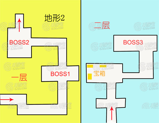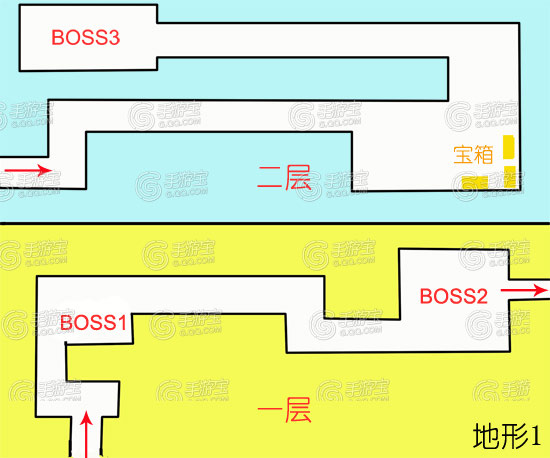 由上面两张地形图可以看出,试炼场的地形多为狭窄的通道,如果遇到突然开阔的地方,恭喜你!前方BOSS地区到达;战斗吧骚年!