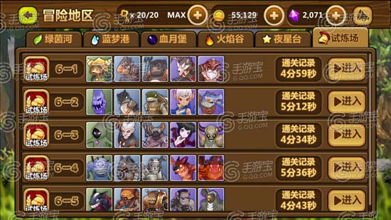 试炼场一共有五个关卡,关卡地图分别对应五个冒险主题(黑暗系的绿茵河、蓝梦港神马的小编敢乱说?);每个关卡分别包含两层以及三个BOSS,对!你没看错!就是三个BOSS!集体开趴体的即视感有木有!