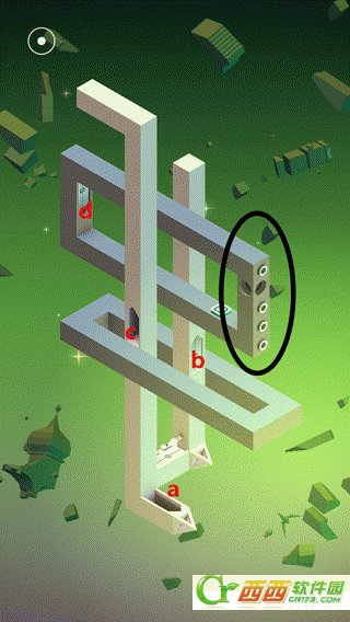 ② 将滑块顺时针旋转90°,可旋转的白柱转至图中位置,行入a门。