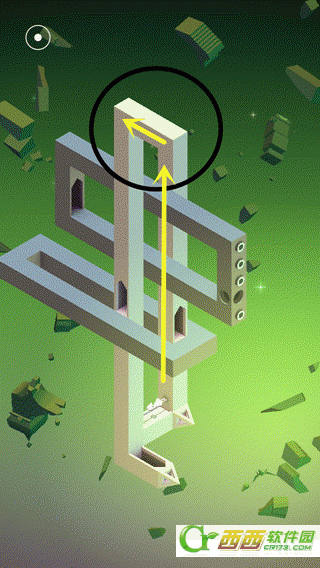 ① 将滑块旋转180°,使两根白柱相接,走至可旋转的白柱处。