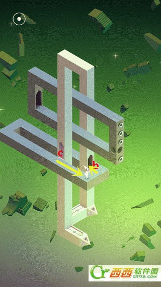 这个场景比较简单,遇见无法直接通过的地方就旋转场景,直到进入内侧。触动机关,点亮黄灯,返回主场景,