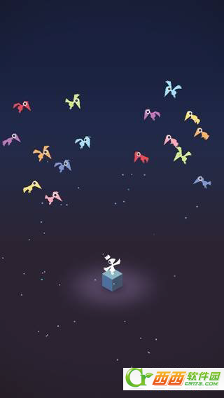 ④ 游戏的最后,一束束光射向黑黝黝的乌鸦人,它们在光中褪去黑暗,变得缤纷美丽。一顶王冠落下,公主在光芒下化作一只头顶王冠的银色乌鸦人。这便是故事的结局。