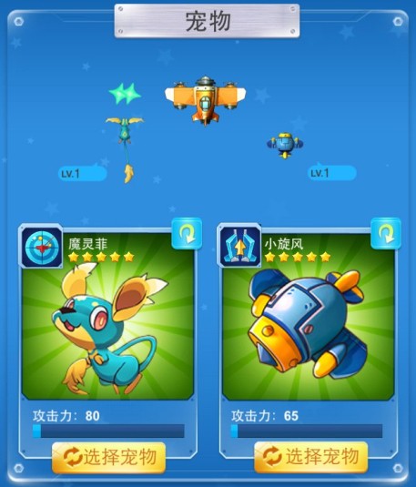 战机的左侧、右侧,分别可以自由选择宠物背包里的宠物出战。可选择不同宠物,也可选择同类宠物出战(前提是该种宠物有不止一只)。
