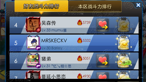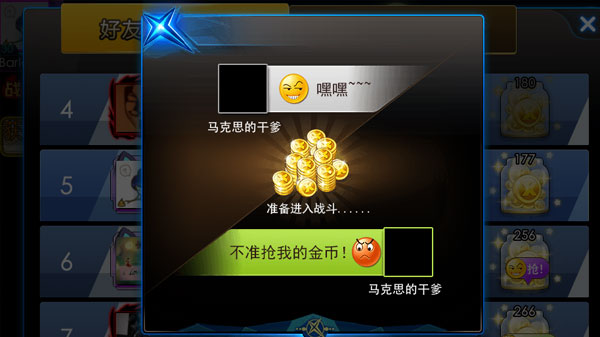 打开“排行”就会看到好友战斗力排行,试着去摸一下.....进行试探能不能偷取对方金币,如果不行,那就准备战斗吧!!!