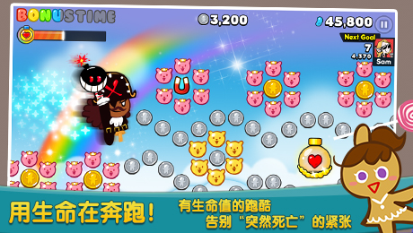 《姜饼人酷跑》是一款2D横版跑酷游戏,画面风格为Q版卡通。游戏操作简单,跟大多数跑酷游戏一样玩家只需控制角色奔跑、跳跃、滑行、躲避就可以愉快的玩耍了。但与大多数跑酷游戏中的突然死亡不同的是《姜饼人酷跑》不会让角色进行突然死亡,而是耗损角色生命值,只有当生命值消耗殆尽才会死亡结束游戏,这在期间玩家可以不断在奔跑过程中积攒道具获得生命值从而一直跑下去,让姜饼人逃离被吃掉的命运。