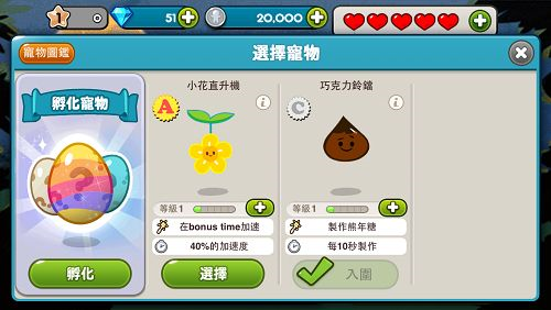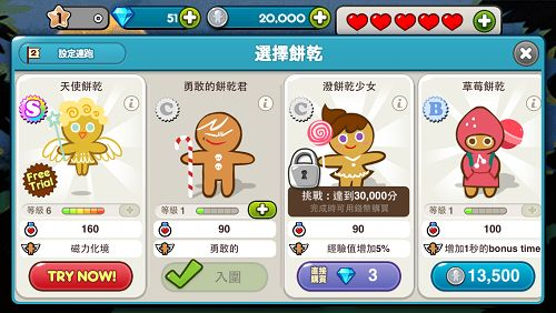 透过钻石、银币可以解锁不同装扮的姜饼人,包含天使饼干、夹心饼干、海盗饼干等等。透过使用不同的姜饼人来跑动,可以获得不同的技能加成,比如天使饼干,就有磁铁技能,可以吸收沿途所有药水和软糖,用起来感觉完全不一样啊!姜饼人跑动时,都可携带一只宠物,透过购买彩蛋就可孵化不同的宠物,可针对姜饼人跑动的历程,进行不同内容的加乘,例如原始的巧克力铃铛,就可增加熊软糖的出现机会!所以想要跑到更高分,就赶快积攒更多钻石和银币吧!