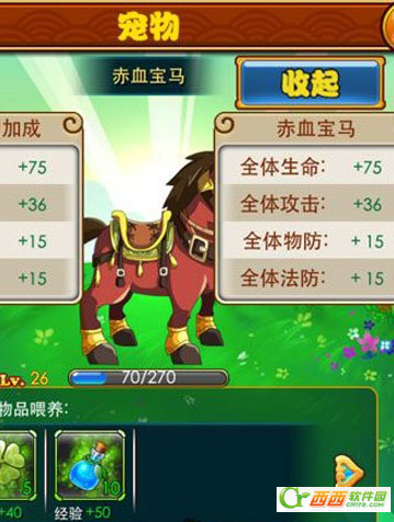宠物分为普通宠物和珍稀宠物,都可以通过喂养进行升级,升级后可以提高全体上场武将的能力。玩家在初期会先解锁一只普通宠物到一定等级后还会开启下一个宠物。珍稀宠物要在游戏里达到各种条件才可以获得。其中就包括击杀世界boss!