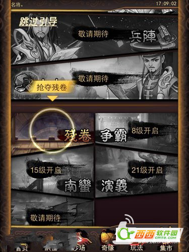 《乱世曲》对于那些曾经接触过卡牌类游戏的玩家来说其实并不会感到太过陌生,只是在体力值和精力值的使用上需要多花一点时间熟悉,毕竟这两“值”将会伴随玩家整个游戏的。而战力的提升也很方便,简单一句就是“缺哪补哪”,装备一定要人手一件,心法和武技也力求每人一个,而强化什么的在前期并不现实,所以可以暂时不用考虑。所以在前期玩家可以做的东西其实不多,不过每一点都需要玩家加倍留意。