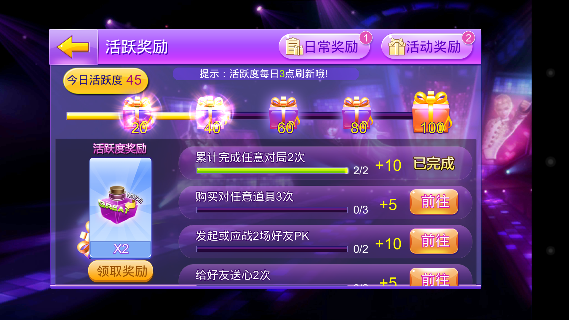 新增活跃度系统,每日达成指定活跃度条件,轻松领取丰厚礼包!