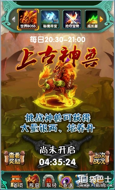 每天20:30,神兽火麒麟将准时出现在游戏中求虐!当火麒麟被成功虐杀后,系统将统计每一名小伙伴们的累计伤害,并作出排名统计!而所发放的奖励,将以排名为准。偷偷告诉小伙伴们一个惊天秘密,那名最后成功击杀火麒麟的小伙伴,将可获得额外的超高击杀奖励哦。所以说,虽然不是一个人在战斗,但最为幸运的人,却也只有一个!